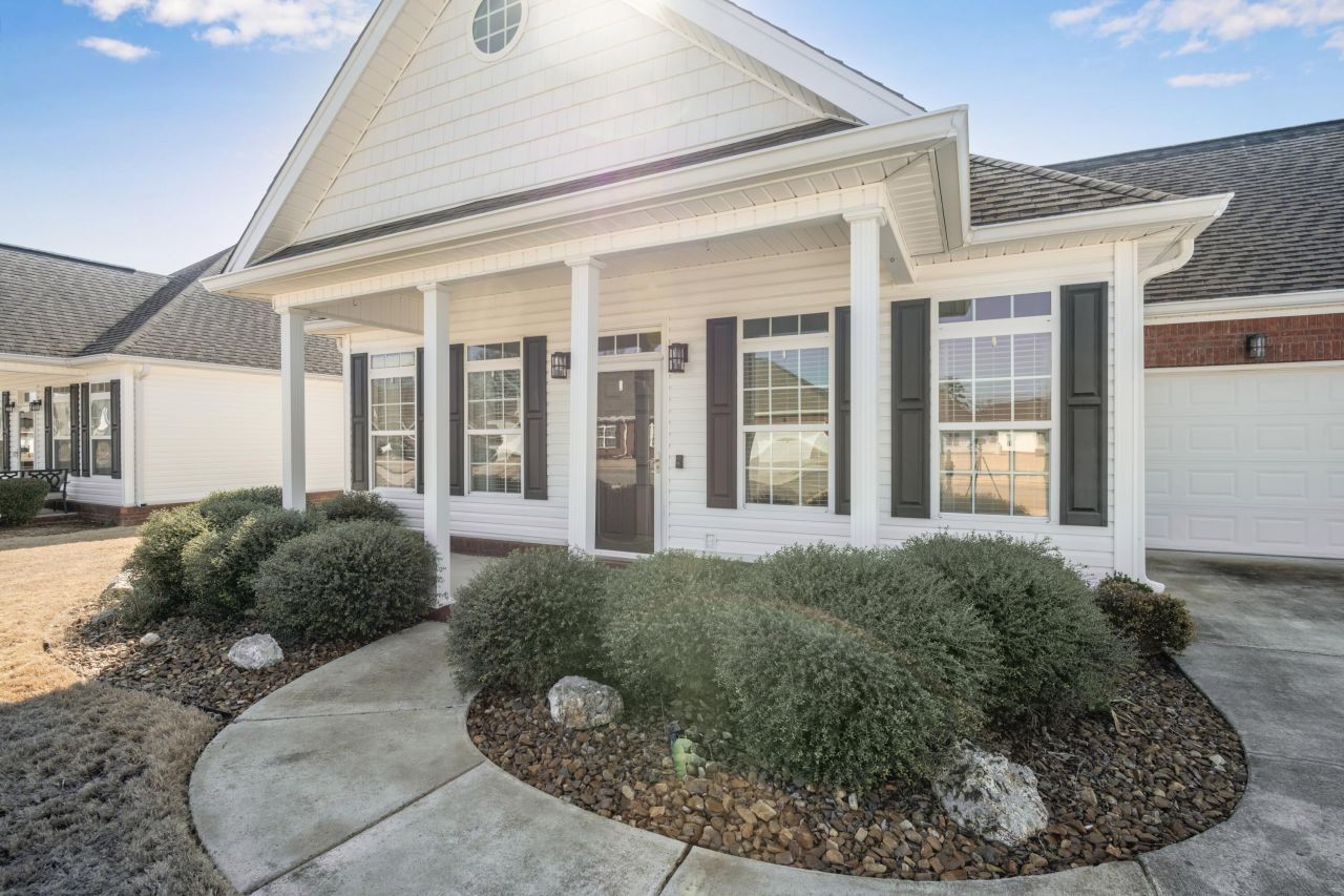 Welcome to Heritage Row, a quiet and convenient neighborhood located in historic Chickamauga! This well maintained single-family residence offers exceptional curb appeal and thoughtfully designed one-level living. Step inside to a well appointed 2-bedroom/2 bath floor plan filled with plenty of natural light, trey ceilings, and crown molding throughout. The spacious living area has large windows, an inviting gas fireplace, and seamlessly flows into the kitchen and dining area. The kitchen is a chef's delight, featuring abundant cabinet and counter space, stainless steel KitchenAid appliances, and a nice sized pantry.The primary suite has a double trey ceiling, a large walk-in closet, and a private ensuite bathroom with a low step-in shower and a double sink vanity. The second bedroom is located just off the living room. It also has lots of natural light from the oversized windows, 2 closets for storage and is located right beside the guest bathroom. Enjoy year-round comfort in the light-filled sunroom with custom shades and a dedicated mini split unit, which keeps it comfortable regardless of what the temperature is outside. This space is perfect for a home office or a cozy retreat.Outside, enjoy a spacious level corner lot! The front porch is perfect for relaxing and the back patio is a great spot for entertaining friends and family. This move-in-ready home combines impeccable design with low-maintenance living. Don't miss this opportunity for convenient, single-level living in a highly desirable community.The Heritage Row development is located just off the Hwy 27 by-pass, providing quick access to Chattanooga, Fort Oglethorpe, Ringgold, and LaFayette.