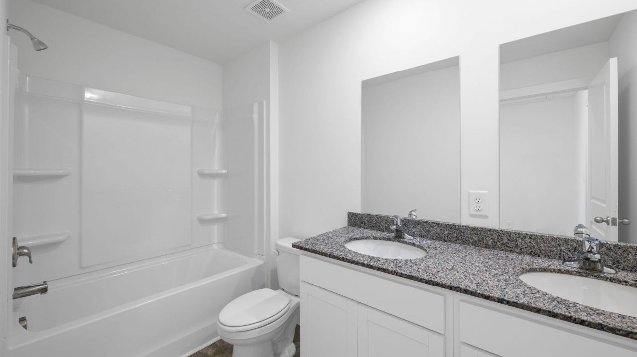 Built for the way you live; the Belhaven floorplan is available in the Hawks Landing in Apison, TN . This two-story plan features a gracious primary bedroom upstairs with a walk-in-closet and spacious bathroom. The second level also features three secondary bedrooms with an additional bathroom. Enjoy the convenience of having washer and dryer hookups upstairs. The main level has a flex room that could be used as a study or designated formal dining area as well as a powder room located directly off the foyer. This floorplan offers open concept living, with the expansive great room looking over the modern kitchen. Windows and doors at the back of the home bathe the kitchen area in natural sunlight. The kitchen is an entertainer's dream with a sleek island that features countertop seating. It also features a spacious pantry with plenty of room for grocery items.
