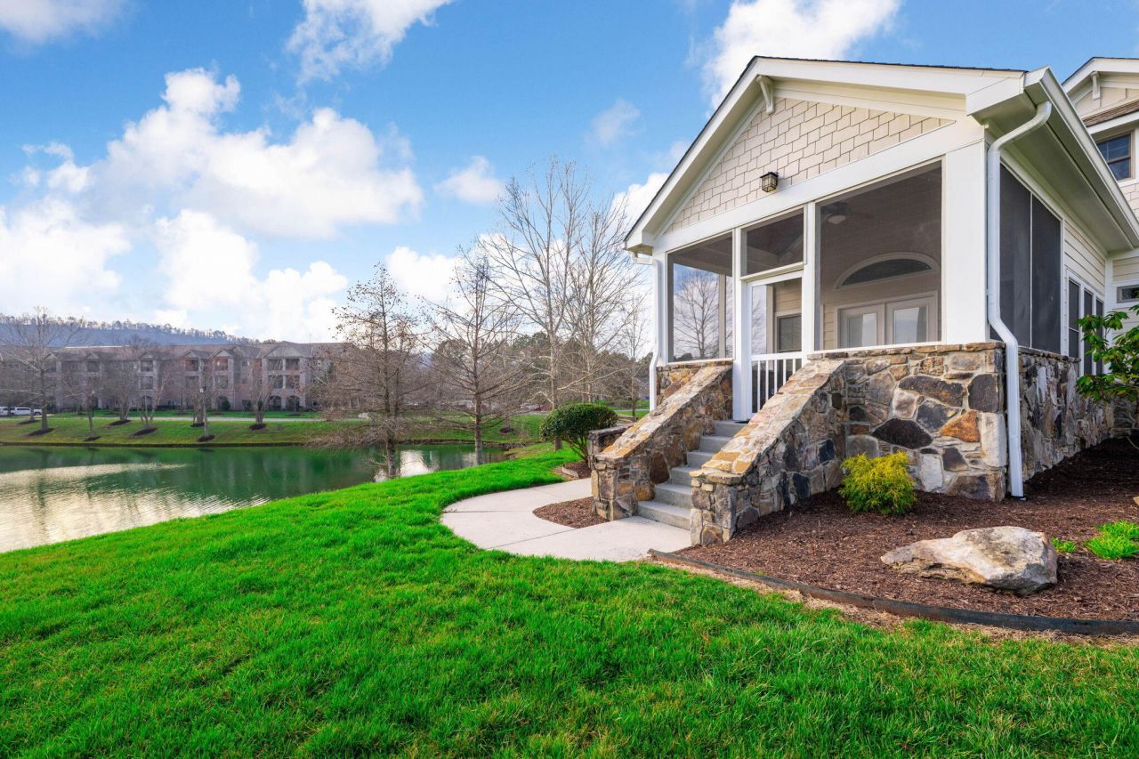 Come and experience Greenbriar Cove, an active 55+ master-planned community. This remarkable home was originally built by the community's developer for his own mother, who was given one of the most desirable homesites in the neighborhood overlooking Lake Eileen and White Oak Mountain.Situated on approximately one-third of an acre, the property offers the feeling of living on multiple acres thanks to its unique positioning beside the lake. With no neighbors to the front, side, or rear, the home enjoys sweeping views of water, mountain ridges, and open green space--an uncommon level of privacy within this sought-after community.Inside, the home showcases remarkable custom details and upgrades throughout. The great room features a stone fireplace surrounded by custom maple built-in bookshelves and display cabinetry. A whole-home surround sound system allows music and audio to be controlled throughout the house.The private office/library is a showpiece, featuring floor-to-ceiling maple paneled bookcases Throughout the home, thoughtfully designed pocket doors maximize space and functionality.This home has been incredibly and meticulously maintained, reflecting true pride of ownership.Beyond the home itself, Greenbriar Cove offers an exceptional lifestyle with community amenities including a clubhouse, pool, fitness center, gathering spaces, billiards room, and walking trails, all within a beautifully landscaped active-adult community.Residents enjoy close proximity to Collegedale Commons, Little Debbie Park, the library, city hall, and police station, with scenic walking trails extending for miles nearby. The neighborhood itself sits at the base of White Oak Mountain, adding to the area's natural beauty.Homes with this level of privacy, craftsmanship, and care in Greenbriar Cove are exceptionally rare. This is truly a one-of-a-kind property.